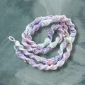 Unsere handgefertigte Makramee Handykette vereint Stil, Funktionalität und einzigartige Handwerkskunst. Aus hochwertigem, weichem Garn in Pastell-Lila, Rosa und Naturtönen geknüpft, verleiht sie deinem Outfit einen trendigen Boho-Touch und sorgt dafür, dass dein Handy immer griffbereit ist.